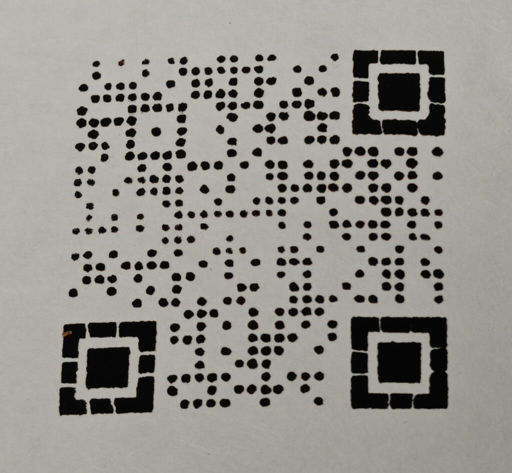 Ich hab einen QR-Code schneiden lassen und dann die Schablone mit Farbrolle auf Papier angewendet: