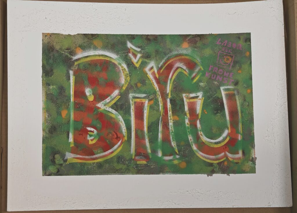 Dies war eigentlich ein Test, bzw. mehrere, bzgl. Untergrund, Methode, Schablonen, Klebeband.